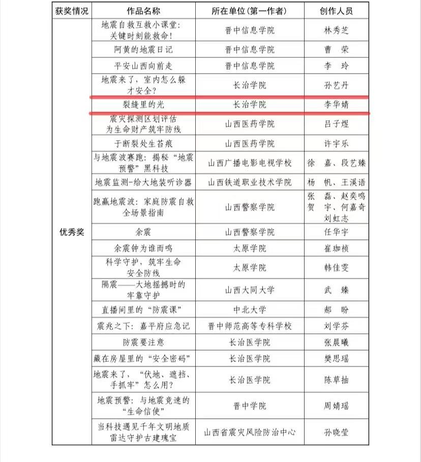 近日,由山西省地震局,山西省教育厅,共青团山西省委 www.91视频.com,山西省科学技术协会联合举办的2025年山西省防震减灾科普作品大赛评选结果揭晓,我校凭借多件优秀作品和扎实的组织工作,荣获"优秀组织奖",同时,我校学子在多个类别中斩获奖项,充分展现了我校在科普创作与实践育人方面的突出成效。