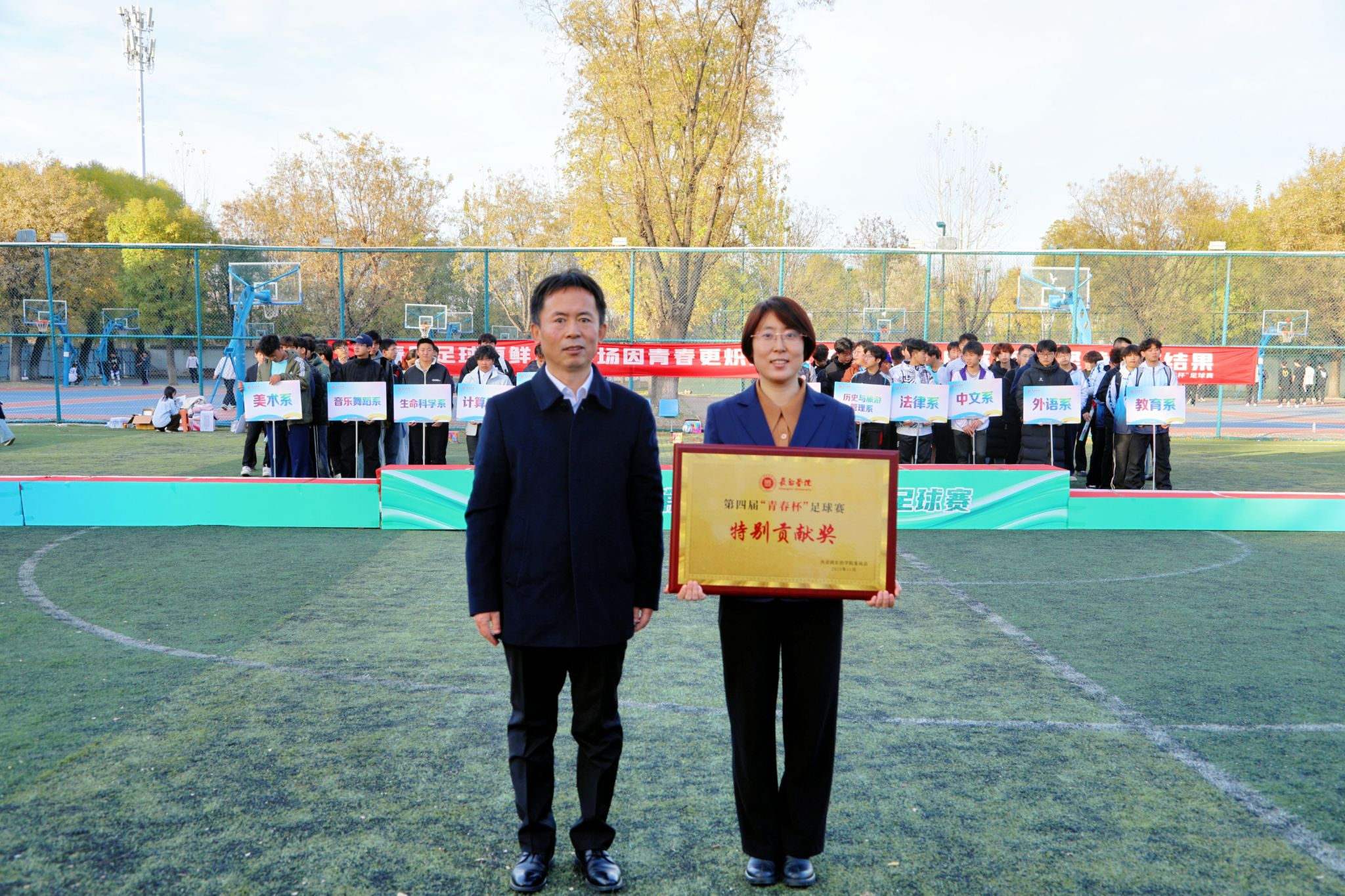 学生工作部(武装部)部长韩峰为体育系颁发特别贡献奖