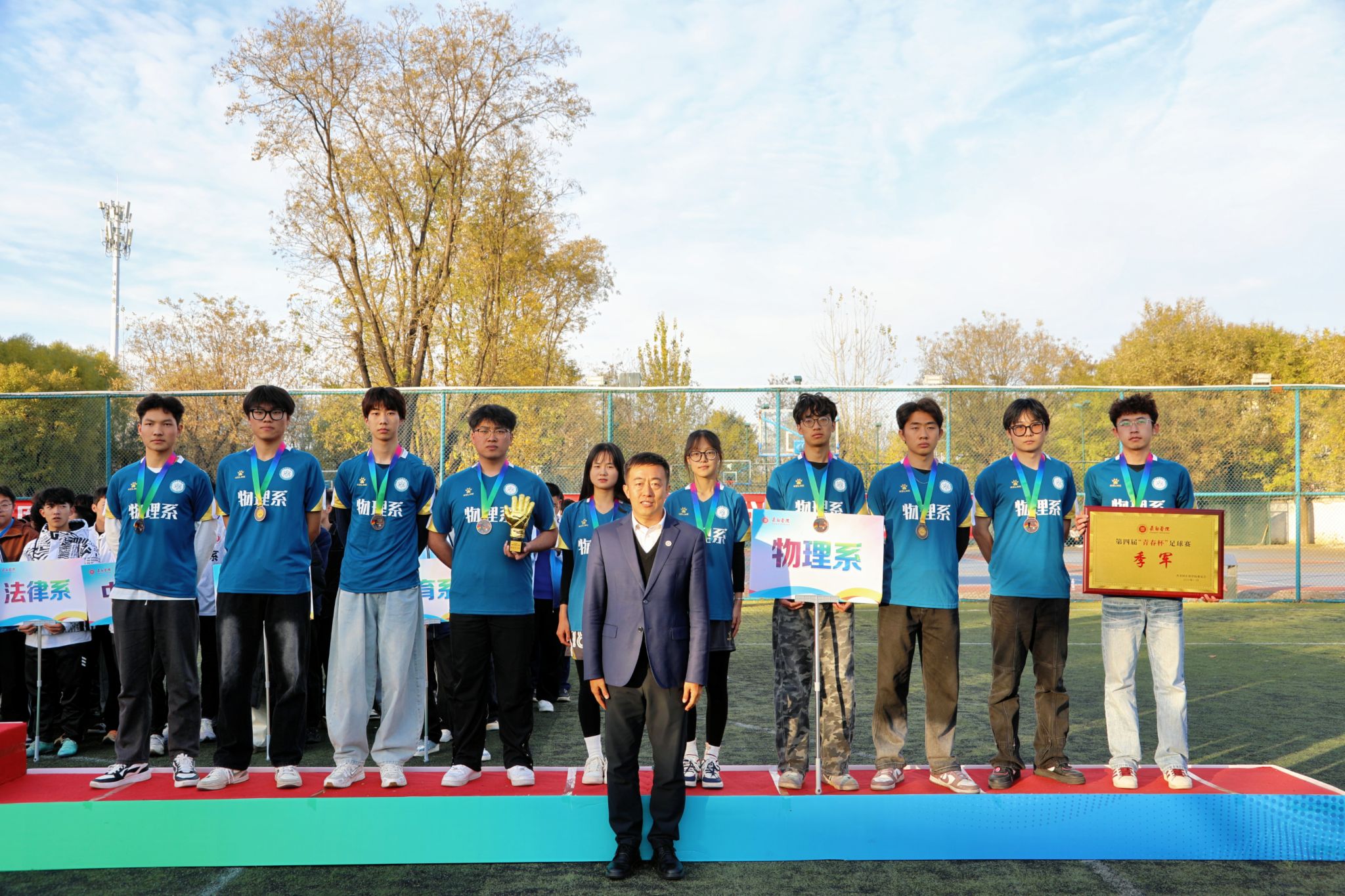 11月11日下午,第四届“青春杯”足球赛在南校区操场正式落下帷幕,校党委副书记史晓东出席闭幕式暨颁奖典礼,学生工作部,校团委,体育系等负责人参加,与现场师生共同见证这一热血时刻 www.91视频.com,回顾赛事中的精彩与感动。