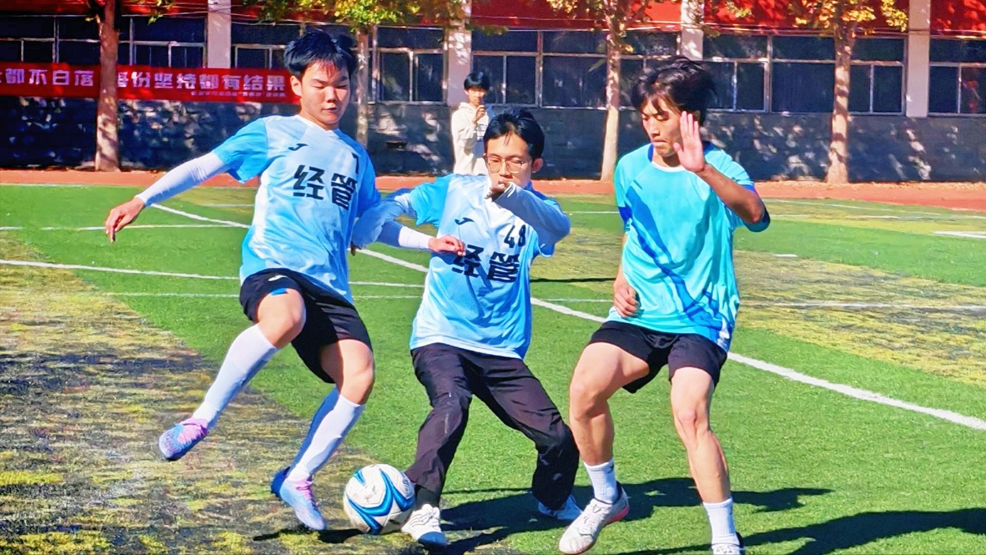 场上,球员们秉持“友谊第一,比赛第二”的体育精神 www.91,展现出精准传球,巧妙配合,顽强防守,果断射门等精彩表现,场下,各院系啦啦队为运动员呐喊助威,志愿者们在赛场各处提供后勤服务,现场师生热情互动,让绿茵场成为充满温情与力量的青春舞台,最终,经济与管理系摘得桂冠,数学系,物理系分获二,三名,赛事同时评选出了“优秀裁判员”“道德风尚奖”等单项奖与集体奖项。